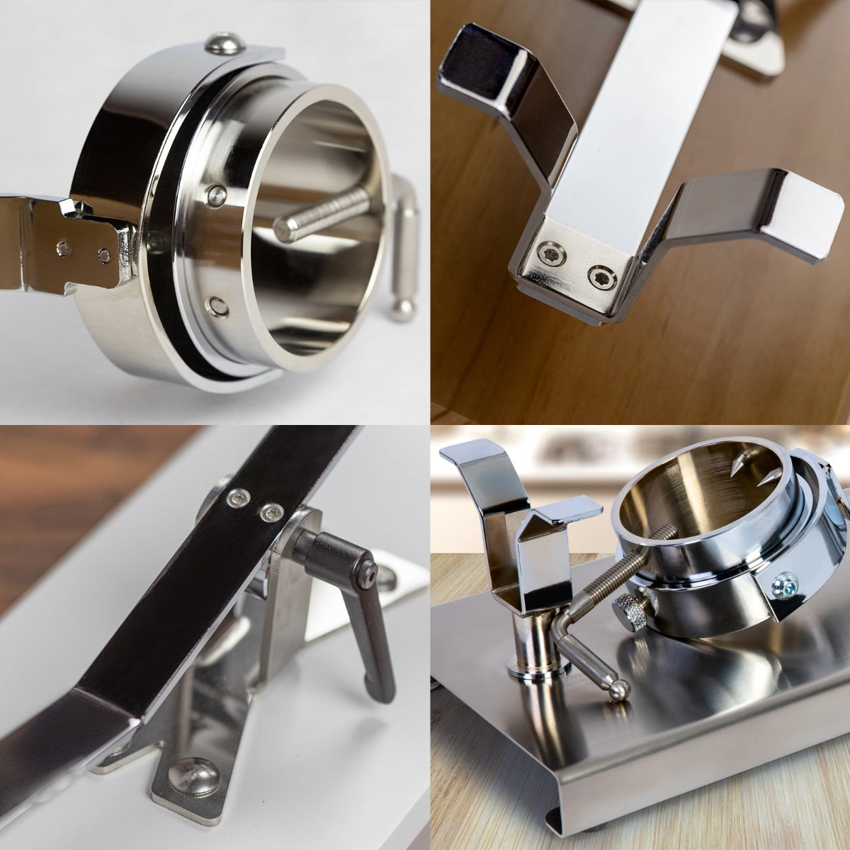 Su sistema de casquillos giratorios permiten girar el jamón los grados que se desee sin necesidad de soltar la pata. La sujeción de la punta tiene forma de V y no lleva pincho para evitar perforar el jamón y/o dañarlo. Es un jamonero muy versátil, manejable y cómodo de usar y limpiar.