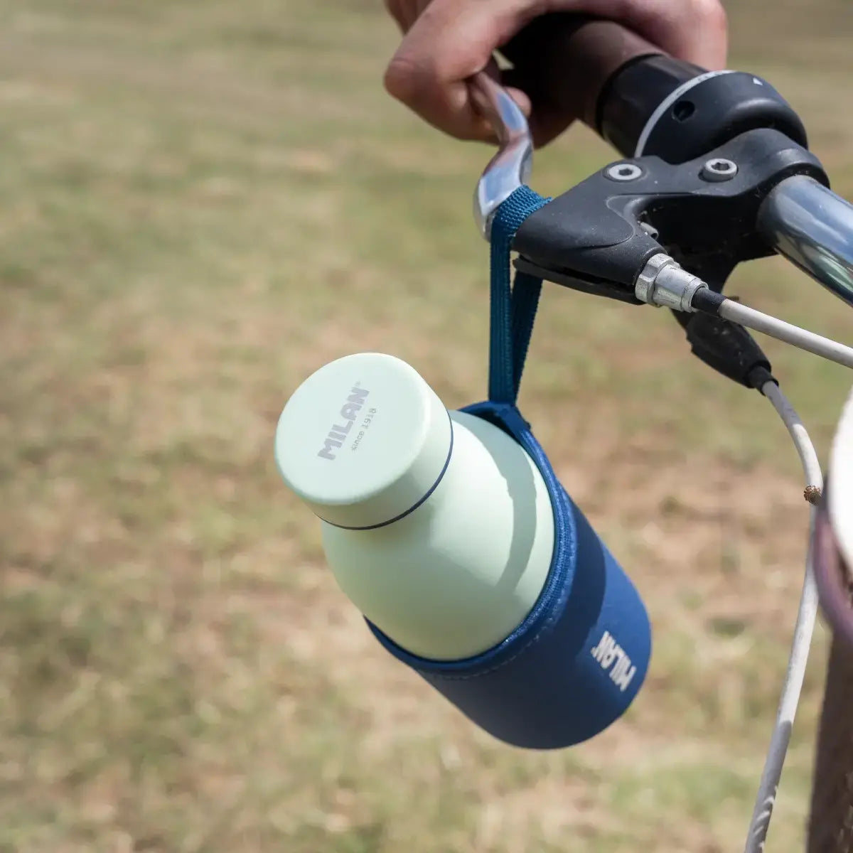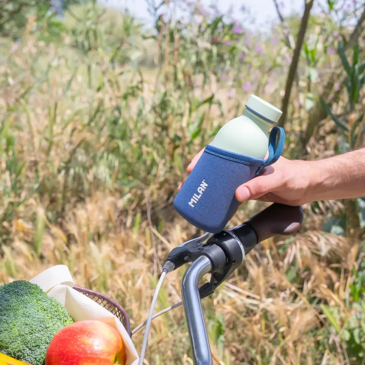 Funda protectora de neopreno para botellas térmicas MILAN, para un cómodo agarre antideslizante, modelo 430 since 1918 Collection. Cuenta con una asa para facilitar el transporte y la manipulación. Apta para botellas térmicas pequeñas de 0.35 litros de capacidad.