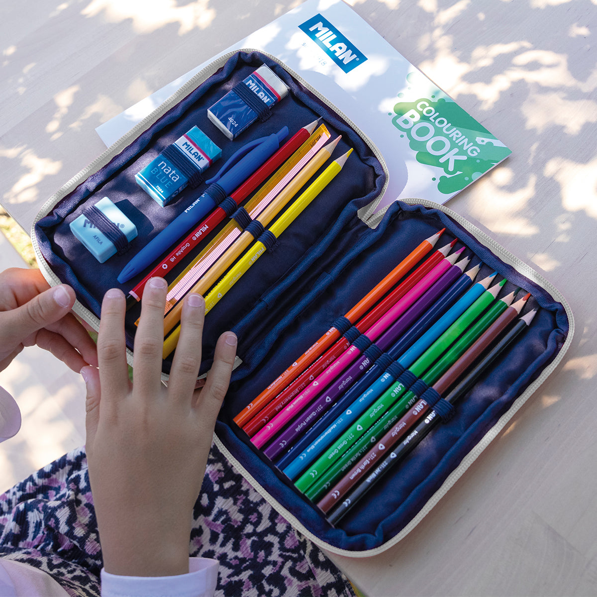 Plumier de 2 pisos Milan Colección 430 since 1918 de color beige, que permite mantener el material escolar siempre ordenado y de fácil acceso. Cremalleras reforzadas, estructura flexible y diseño inspirado en los colores originales de las gomas de borrar MILAN, fabricadas en España desde 1918.