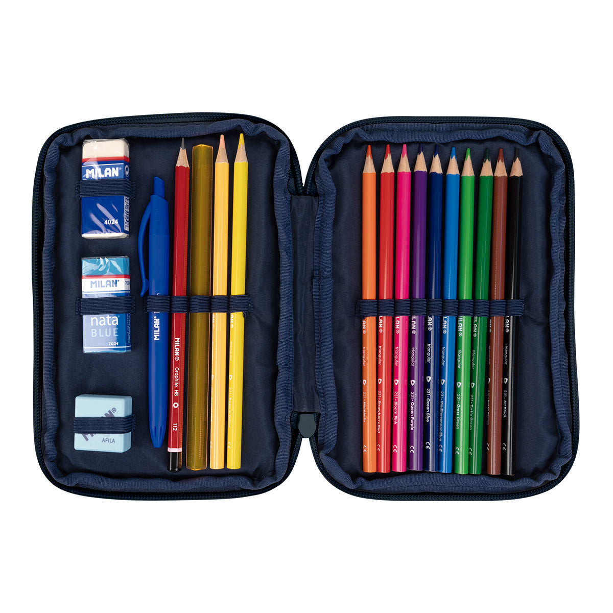 Plumier de 2 pisos Milan Colección 430 since 1918 de color verde, que permite mantener el material escolar siempre ordenado y de fácil acceso. Cremalleras reforzadas, estructura flexible y diseño inspirado en los colores originales de las gomas de borrar MILAN, fabricadas en España desde 1918.