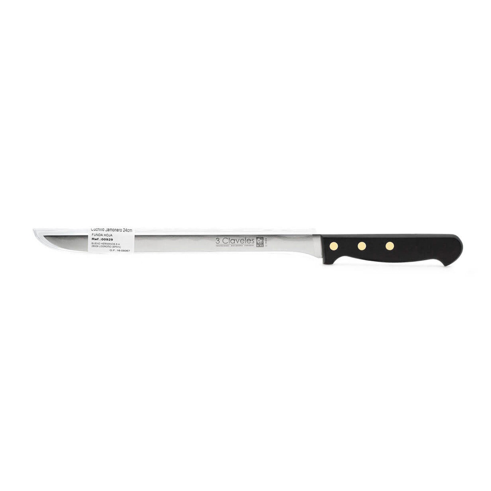 Cuchillo jamonero de 24 cm, es un cuchillo largo y delgado con hoja flexible y filo liso, especial para cortar jamón y otras piezas de carne. Es elección de los chefs, porqué cuentan con la perfecta combinación entre la suavidad en el manejo y la precisión en los cortes.