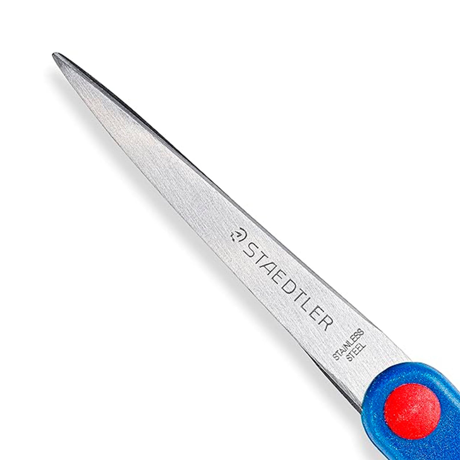 Tijeras para manualidades con corte de alta calidad gracias a sus cuchillas romas fabricadas en acero inoxidable. Zona de agarre en PVC, suave y ergonómica. Tijeras diseñadas para personas diestras. Gran durabilidad y resistencia al óxido.