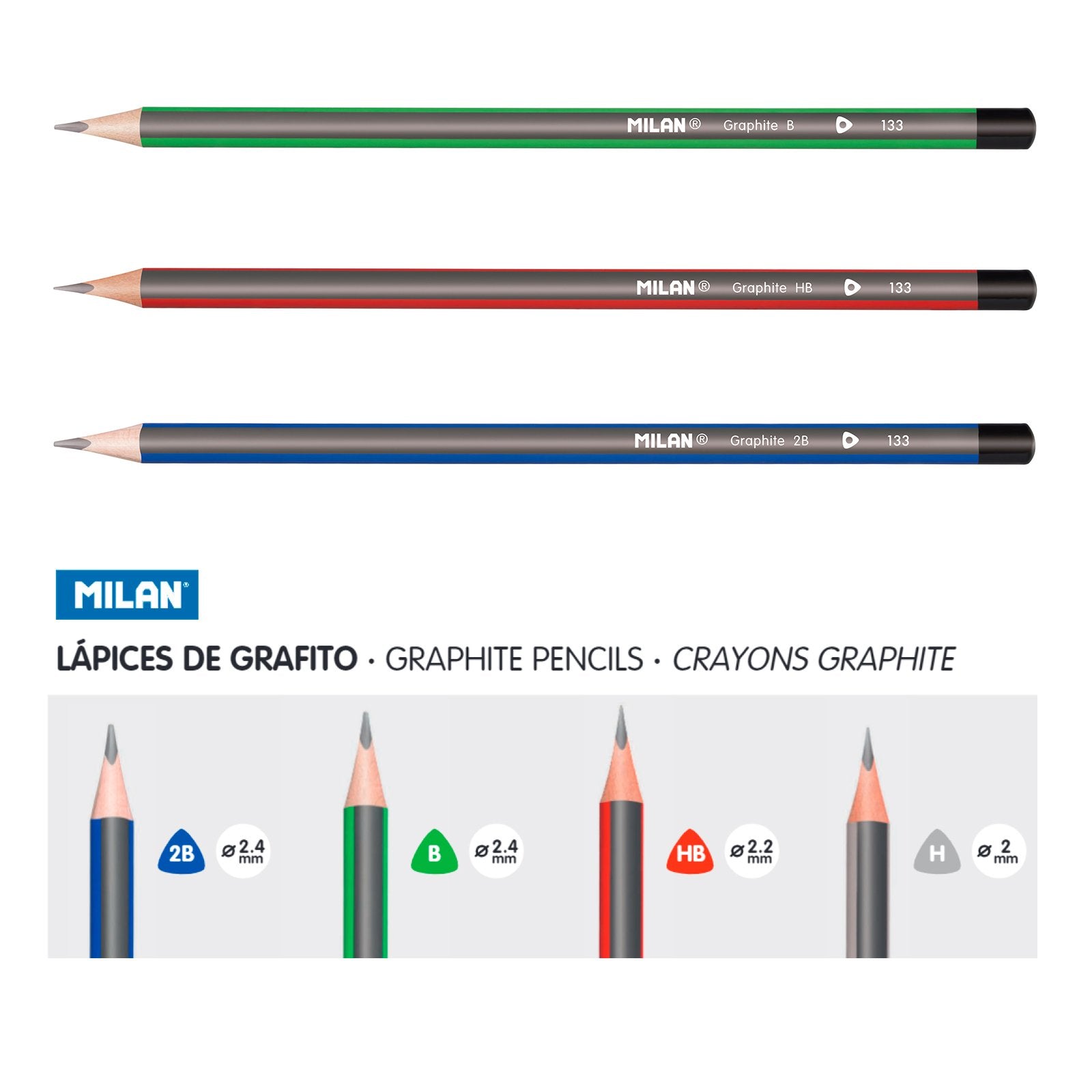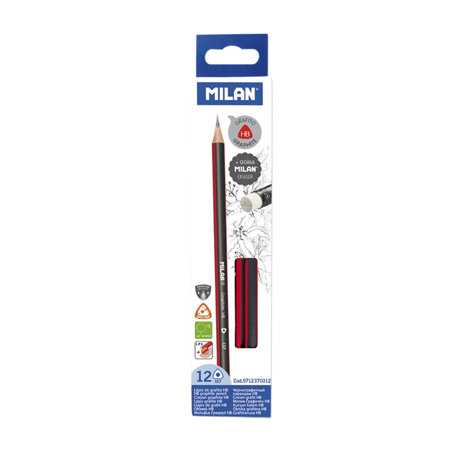 Lápices de grafito HB con goma. Mina de 2.2 mm Ø. Forma triangular ergonómica. La graduación HB en una dureza de grafito media, recomendada para escritura y dibujo. La mina ofrece un trazo uniforme y resistente a la rotura, gracias al sistema LPS (Lj Protection System) que protege la mina gracias a su adhesión con la madera. Madera procedente de plantaciones sostenibles.