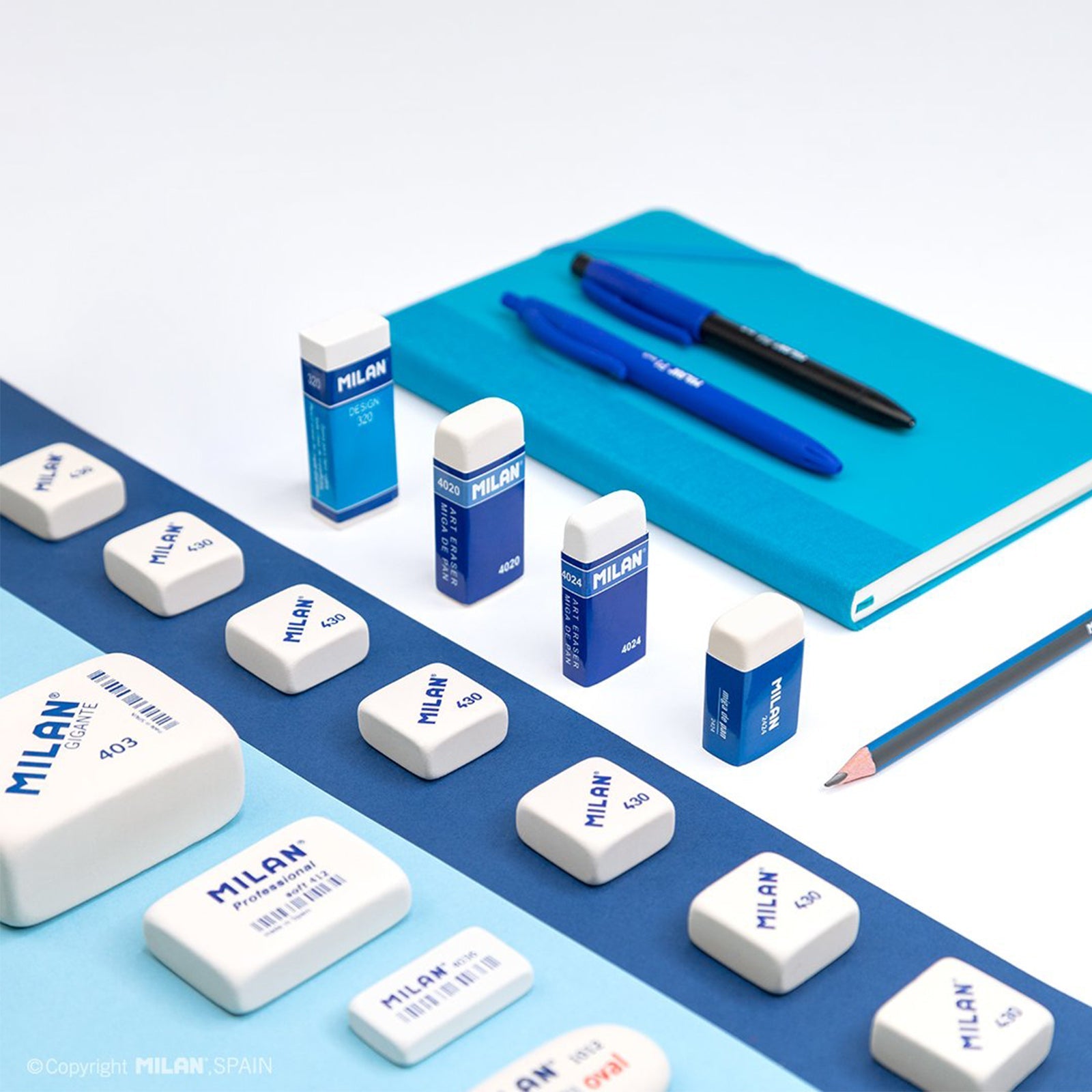 El estuche incluye un afilalápices de tamaño estándar AFILA de color blanco, una goma de caucho sintético suave The Master Gum y una goma de borrar suave tipo miga de pan 2424, para borrar una amplia gama de lápices de grafito sobre toda clase de papeles.