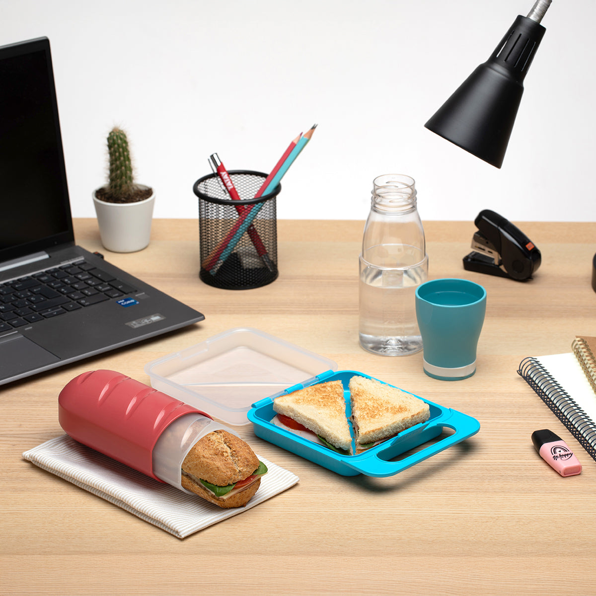 Porta bocadillos infantil extensible TATAY fabricado en plástico PP05, reciclable, higiénico y libre de BPA, totalmente libre de toxicos. Es muy útil para llevar tu bocadillo protegido, además de para evitar el uso de envoltorios de usar y tirar. Larga vida util por su diseño.
