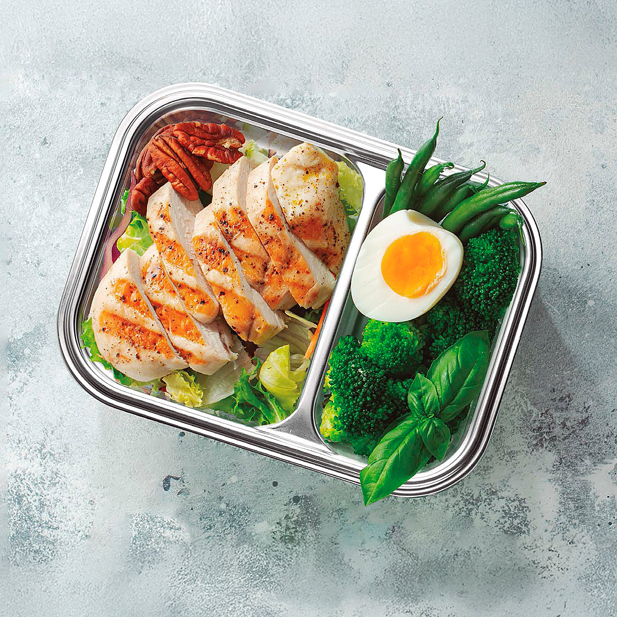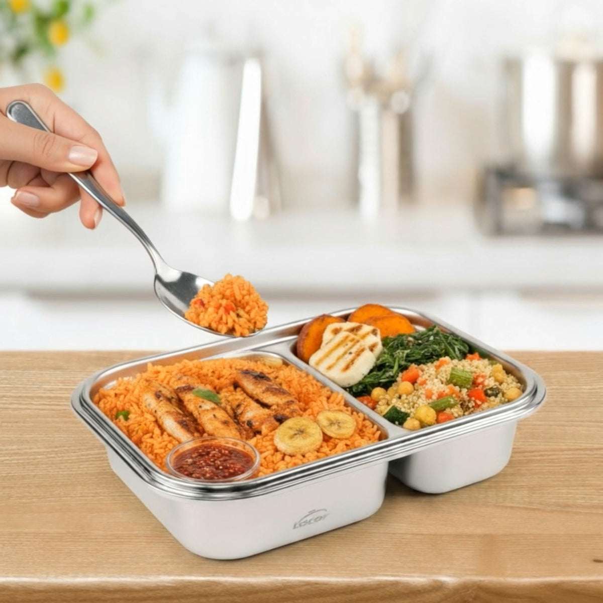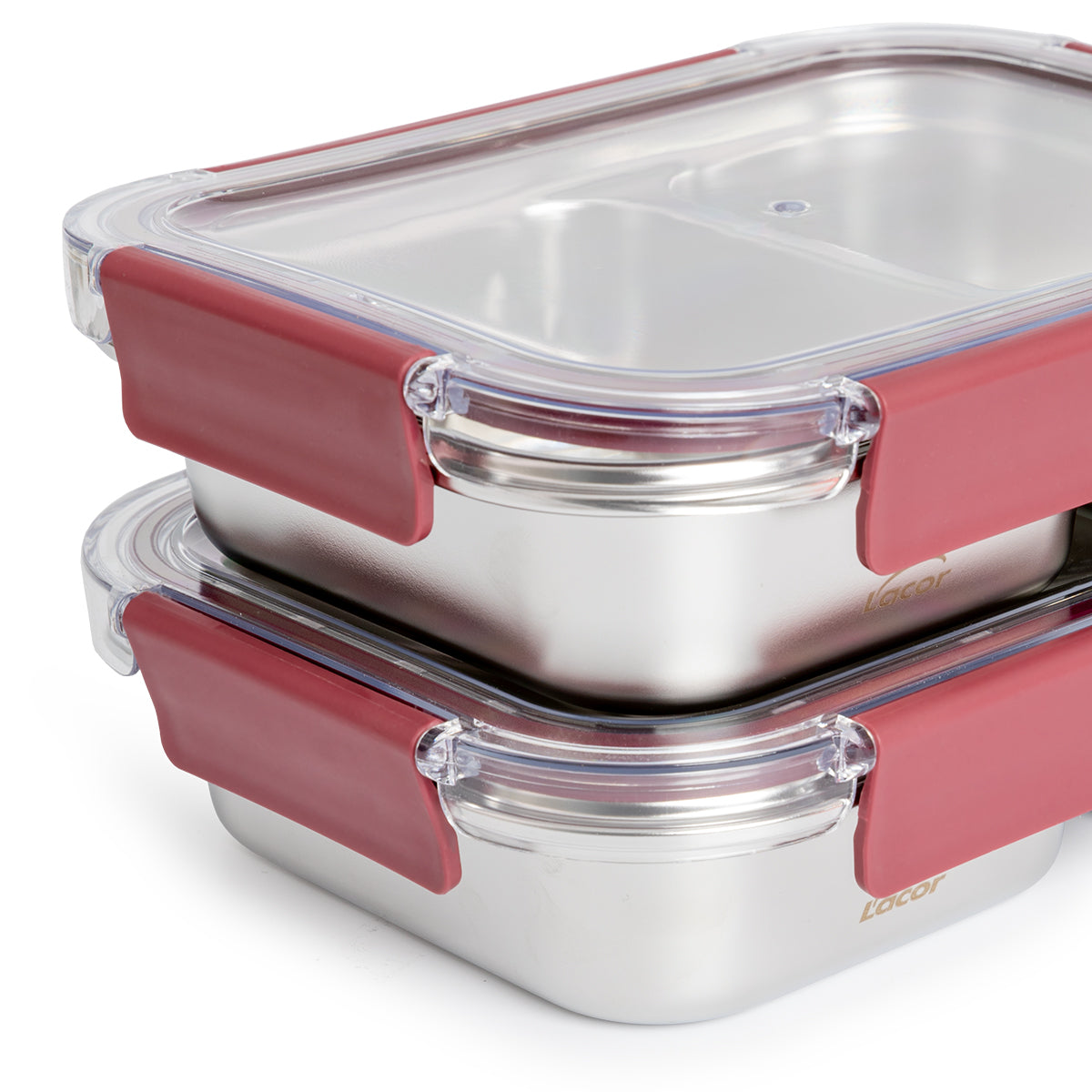 Recipiente hermético rectangular de 2 compartimentos LACOR TwoGo, fabricado en acero inoxidable 18/10 con tapa fabricada en SAN/AS. Especialmente resistente a la oxidación y las bacterias, apto para microondas sin la tapa puesta. Higiénico, no transmite olores ni sabores a los alimentos. Fácilmente apilables y encajables entre sí en algunos formatos, ahorran espacio en tu cocina.