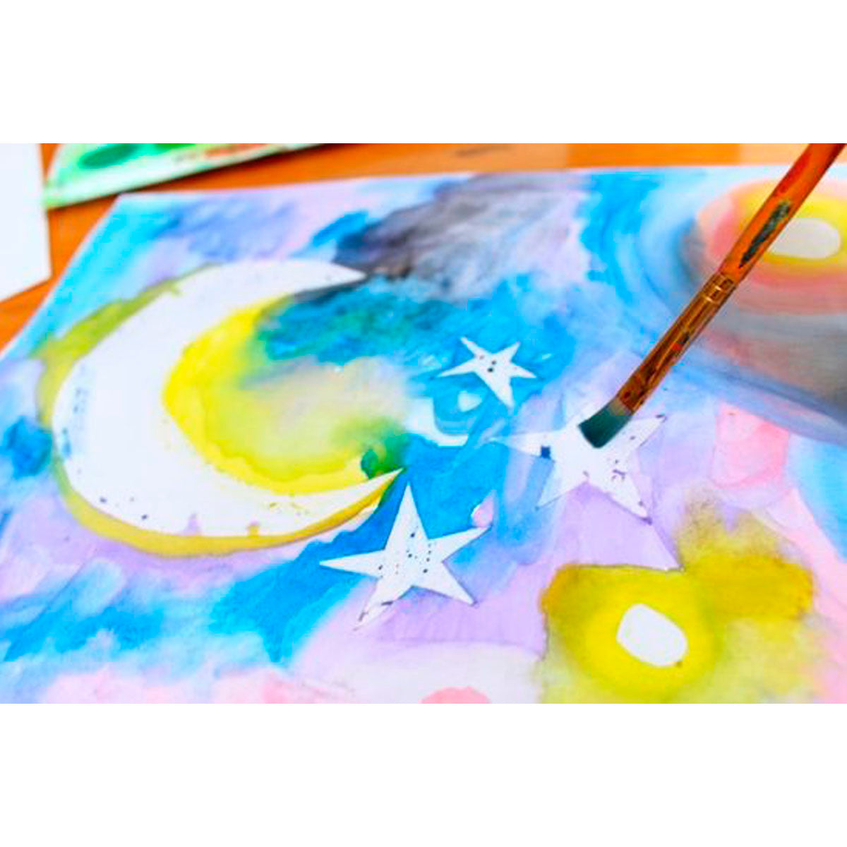 El estuche incluye un pincel de cerda madera natural y un bote de témpera blanca, perfecto para iniciarse en el fantástico mundo de la acuarela. Cumple con la norma Din 5023.