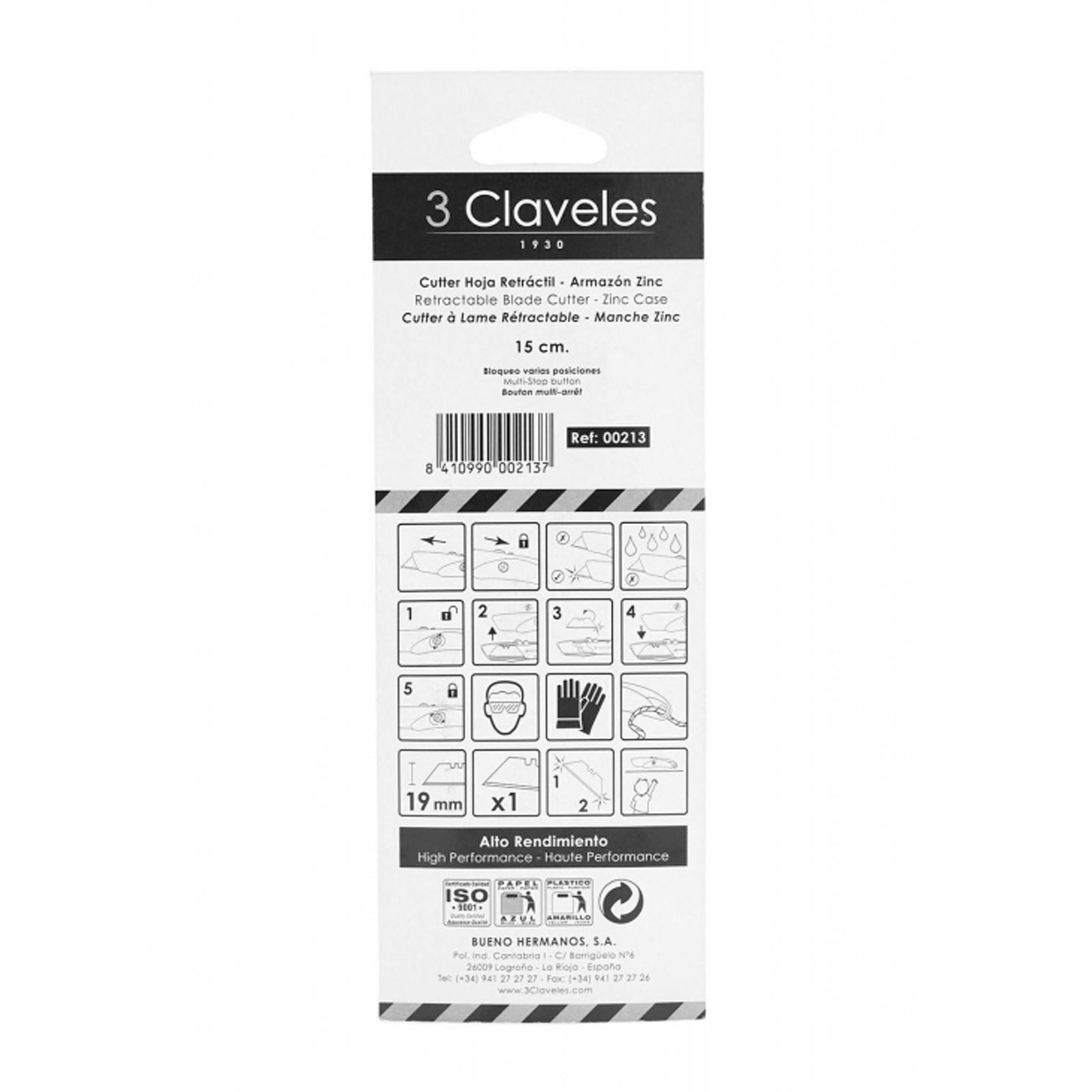 3 Claveles 00213 - Cutter Retráctil de Alto Rendimiento con Bloqueo Automático
