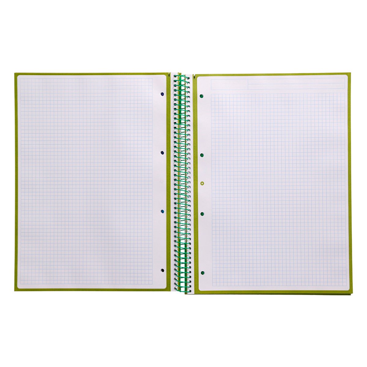 Cuaderno espiral microperforado Antartik en formato DIN A4 con 80 hojas de 90 gr de grosor. Cuadrícula de 5 x 5 mm enmarcado con cabecera para la identificación del tema, fecha, etc. Con 1 banda de color a juego para separar asignaturas y 4 taladros de archivo compatibles con carpetas de 2 y 4 anillas y archivadores palanca. Hojas microperforadas con iniciador de desgarre para poder arrancarlas fácilmente y archivarlas.