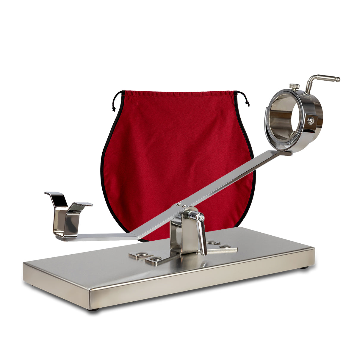 Su sistema de casquillos giratorios permiten girar el jamón los grados que se desee sin necesidad de soltar la pata. La sujeción de la punta tiene forma de V y no lleva pincho para evitar perforar el jamón y/o dañarlo. Es un jamonero muy versátil, manejable y cómodo de usar y limpiar.