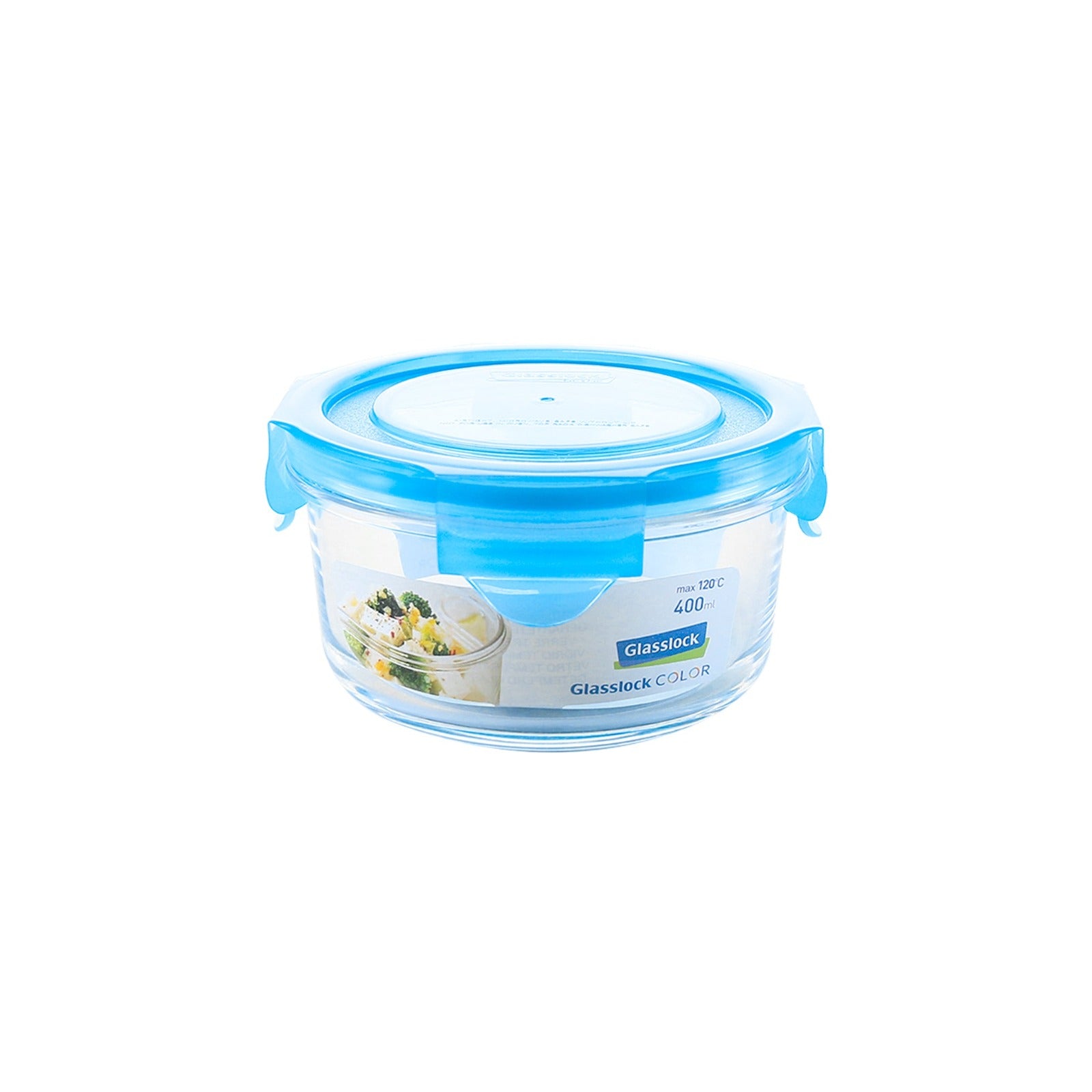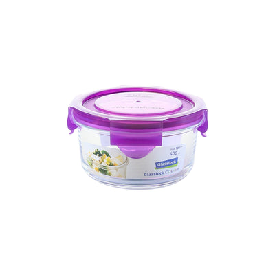 Lote de 4 recipientes herméticos redondos de 400 ml Glasslock Colors fabricados en vidrio sódico-cálcico, un material muy resistente, ecológico y reciclable. Además está libre de BPA y no contiene ningún producto dañino para el medio ambiente.
