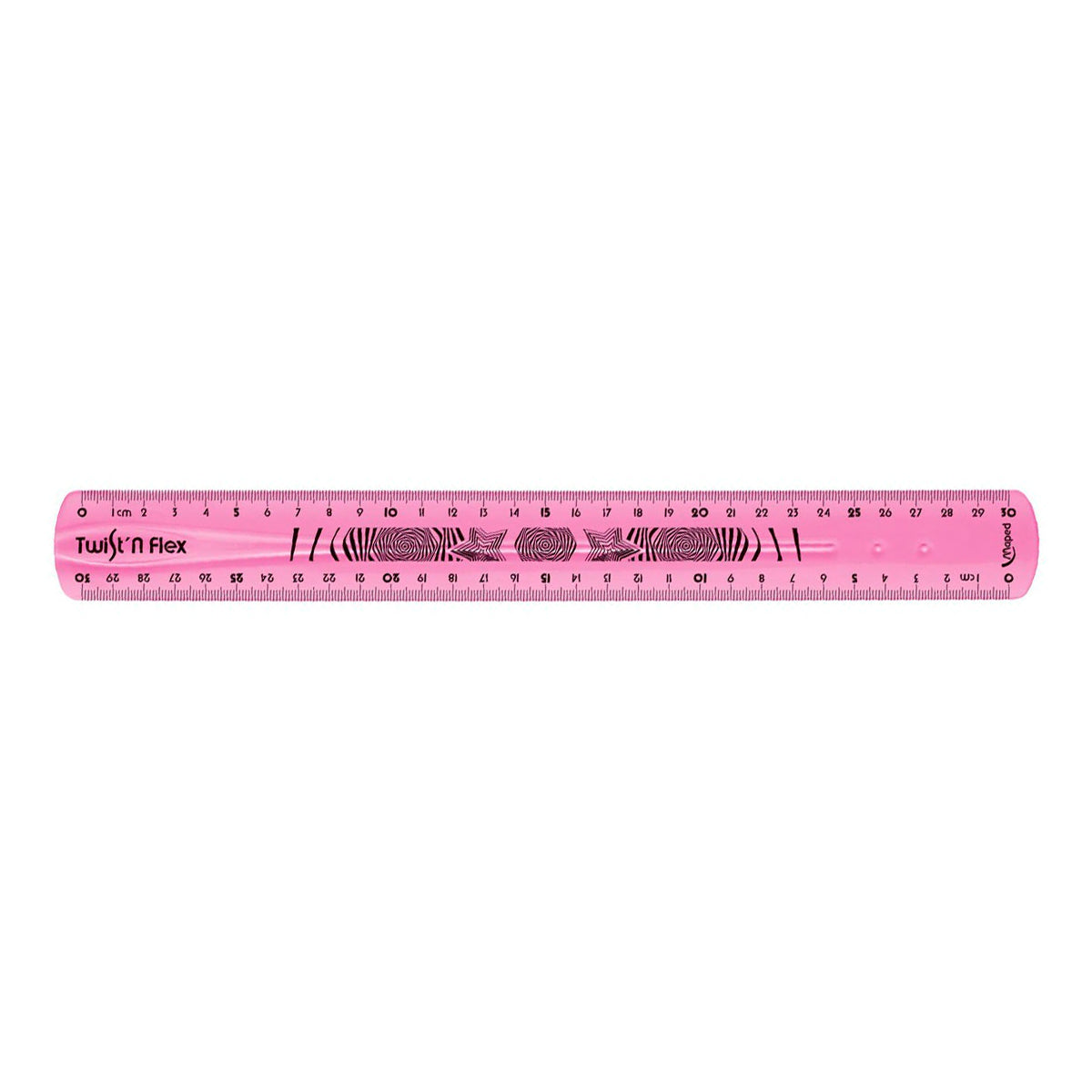 Regla de plástico flexible de 30 cm irrompible MAPED Twist'n Flex. Fabricada en material flexible, resistente a los choques y dobleces. Además, es ecológico y libre de ftalatos.