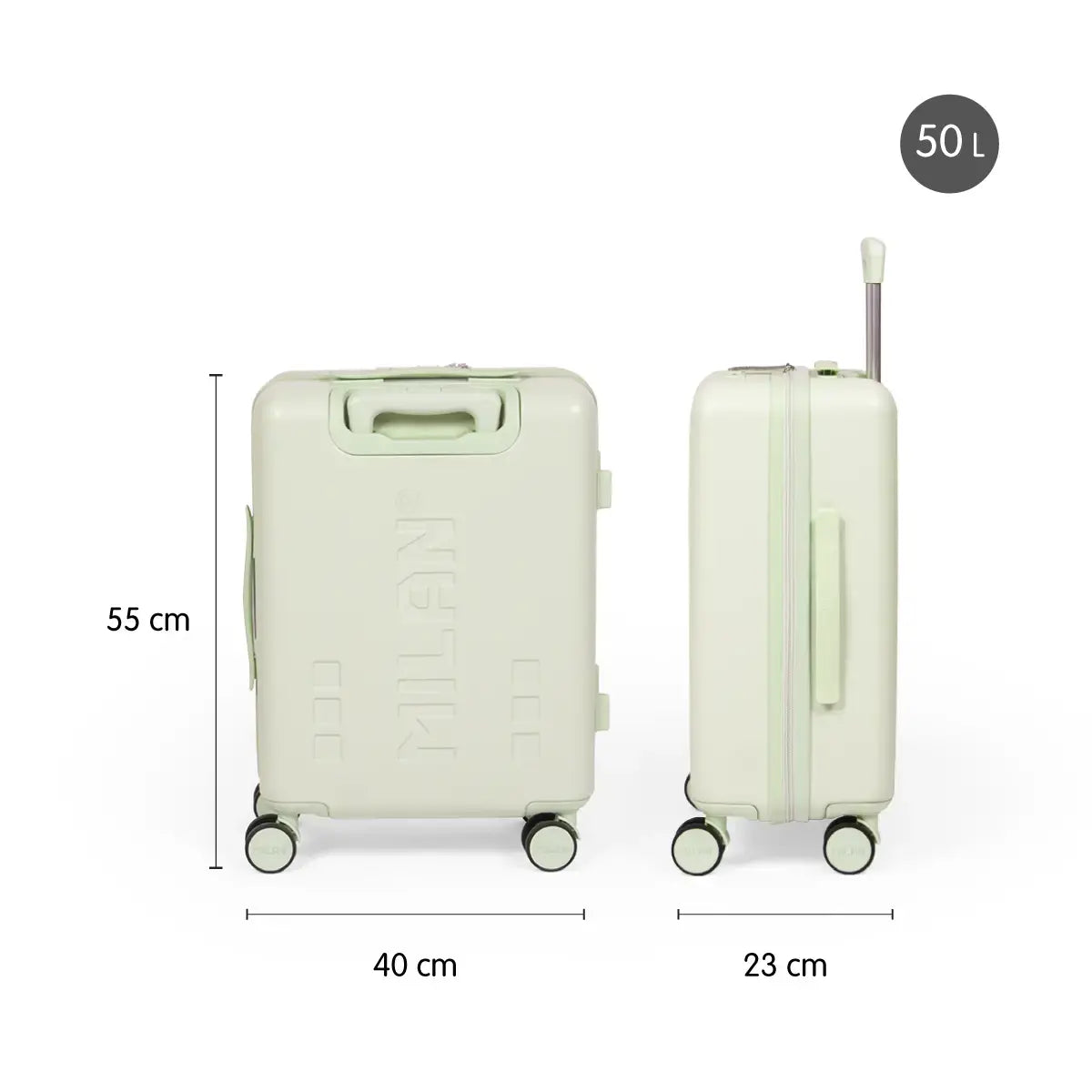 MILAN 1918 - Maleta Rígida de Cabina de 50L en Policarbonato con 4 Ruedas y Cierre TSA. Verde