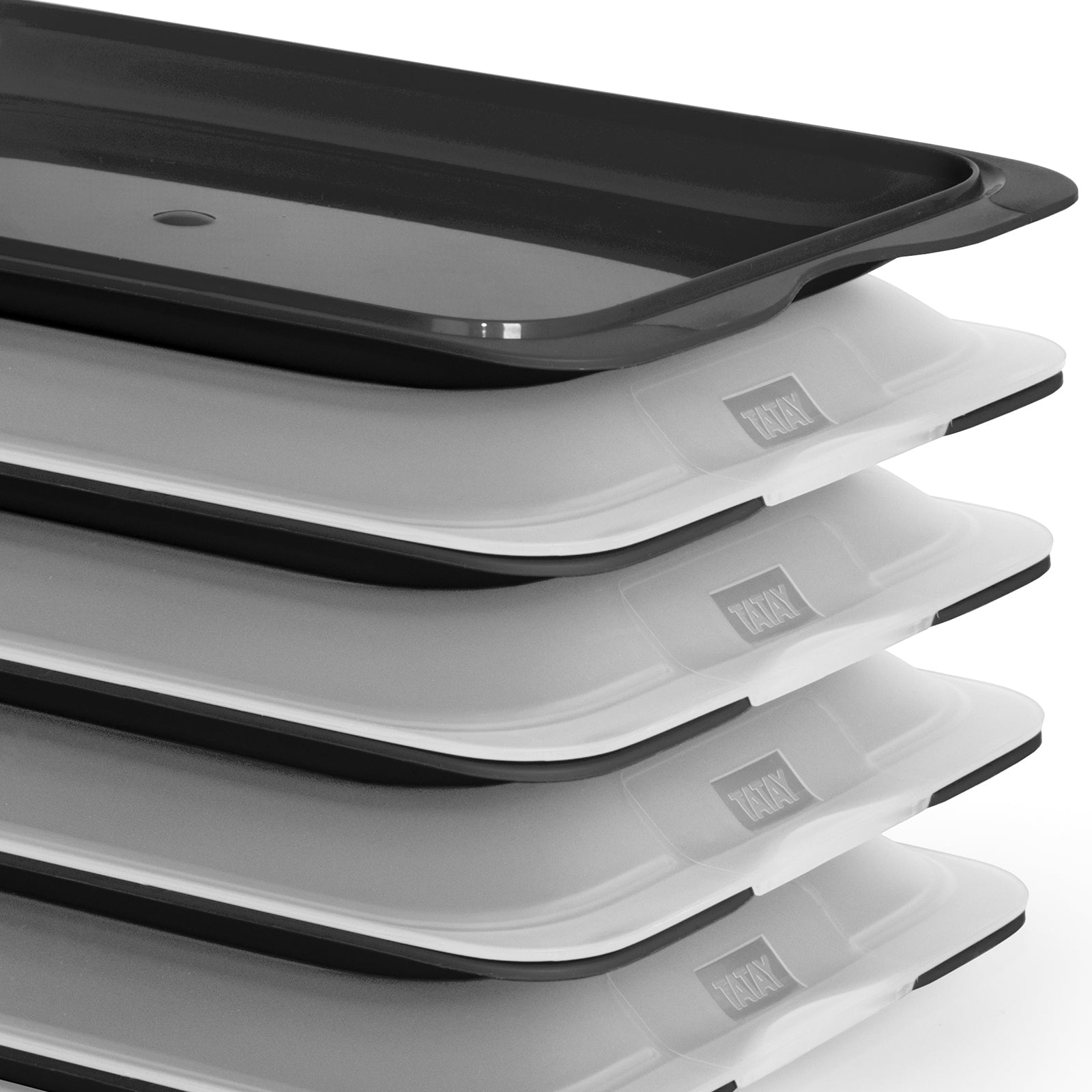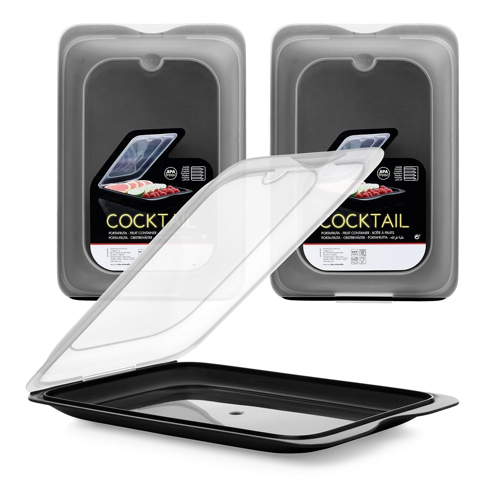 Cuentan con una tapa extraíble que te permite usar el recipiente también como bandeja para servir. De ésta manera, únicamente tendrás que sacarlo de la nevera, ponerlo en la mesa sin necesidad de usar otro plato, y una vez terminado, volver a guardarlo en la nevera con la tapa puesta.