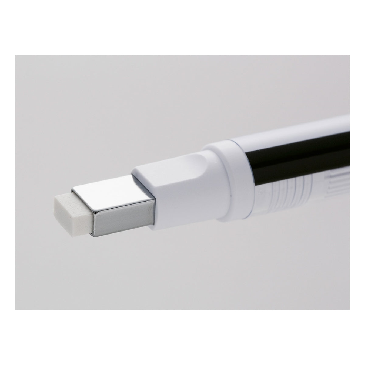 Lápiz borrador de precisión para un borrado profesional y de alta calidad.Su diseño de cuerpo cuadrado le permite adaptarse perfectamente a libreta s y blocs de notas. Punta fina que permite borrar sólo el área que se desee con un borrado limpio y preciso sin dañar el papel. Mecanismo de giro para ajustar el largo de la goma de borrar. Con capuchón de protección. Recargable. manejable y fácil de almacenar. Goma libre de PVC y látex. Punta de precisión rectangular 2.5 x 5 mm. Color blanco/azul/negro.