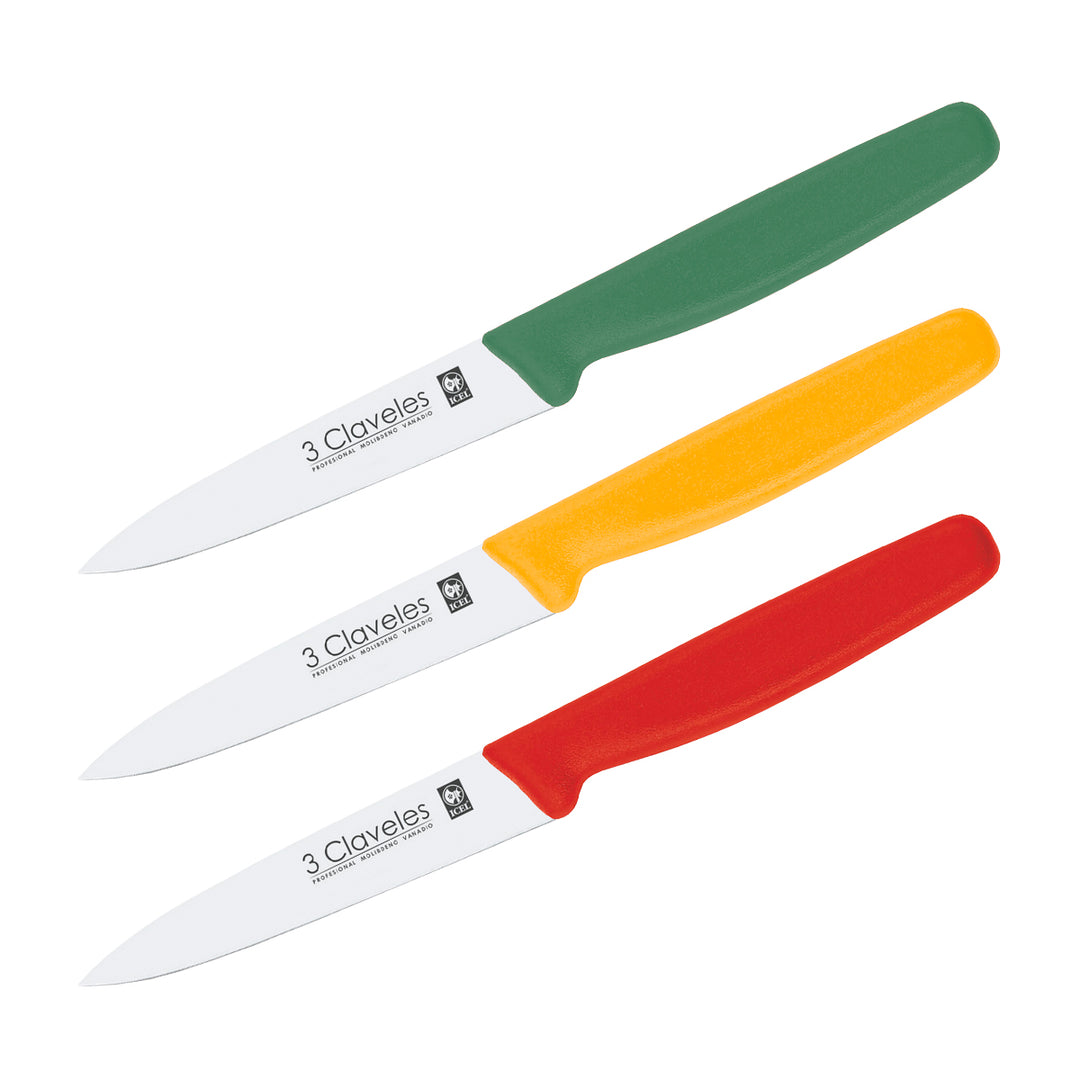 Cuchillo verduras pequeño de hoja de 10 cm ligero y manejable, ideal para cortar, pelar y limpiar frutas y verduras. Se recomienda lavar a mano con productos neutros y secar inmediatamente.