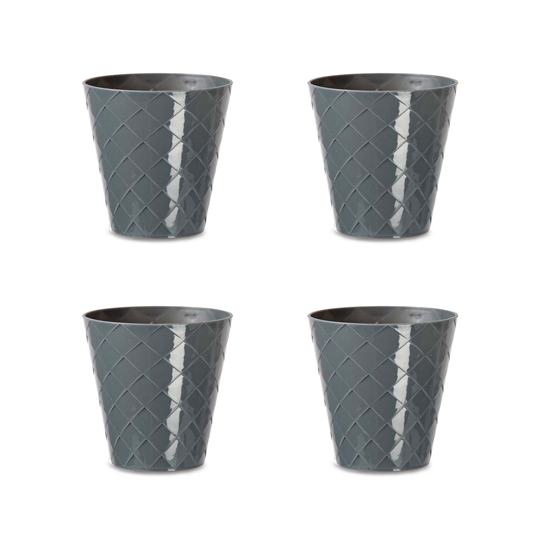 Areca Palm - Set de 4 Macetas Redondas Decorativas 11 cm con Textura. Gris