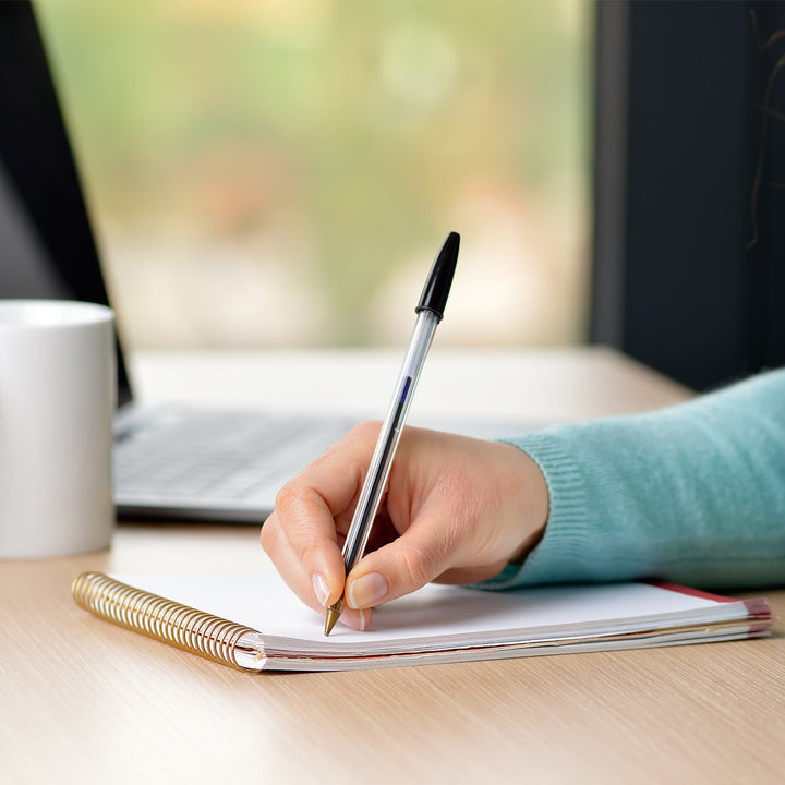 Bolígrafo BIC Cristal Original con punta media de 1.0 mm y trazo de 0.4 mm, que se desliza por el papel con suavidad para ofrecer una escritura sin manchas. Diseño eficaz, sencillo y fiable con un cuerpo transparente que permite comprobar en todo momento el nivel de tinta.