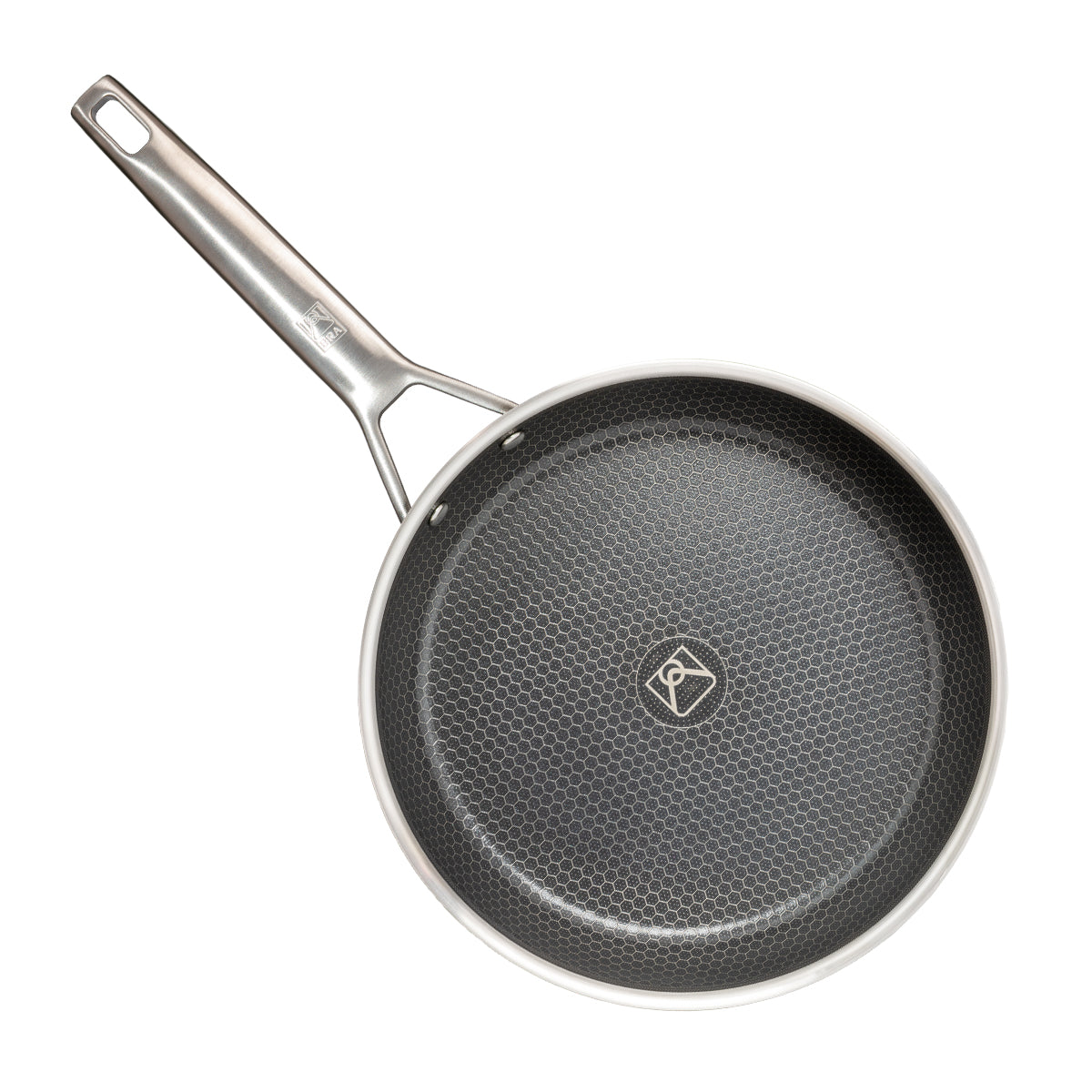 Capa interior de acero inoxidable austenítico 18/10 de 0.5 mm para un contacto seguro con los alimentos, capa intermedia de aluminio de 1.5 mm y capa exterior de acero inoxidable 430 con 18 % de cromo de 0.5 mm para compatibilidad con inducción. El mango ergonómico de acero inoxidable ofrece un agarre muy seguro con remaches sin movimiento.