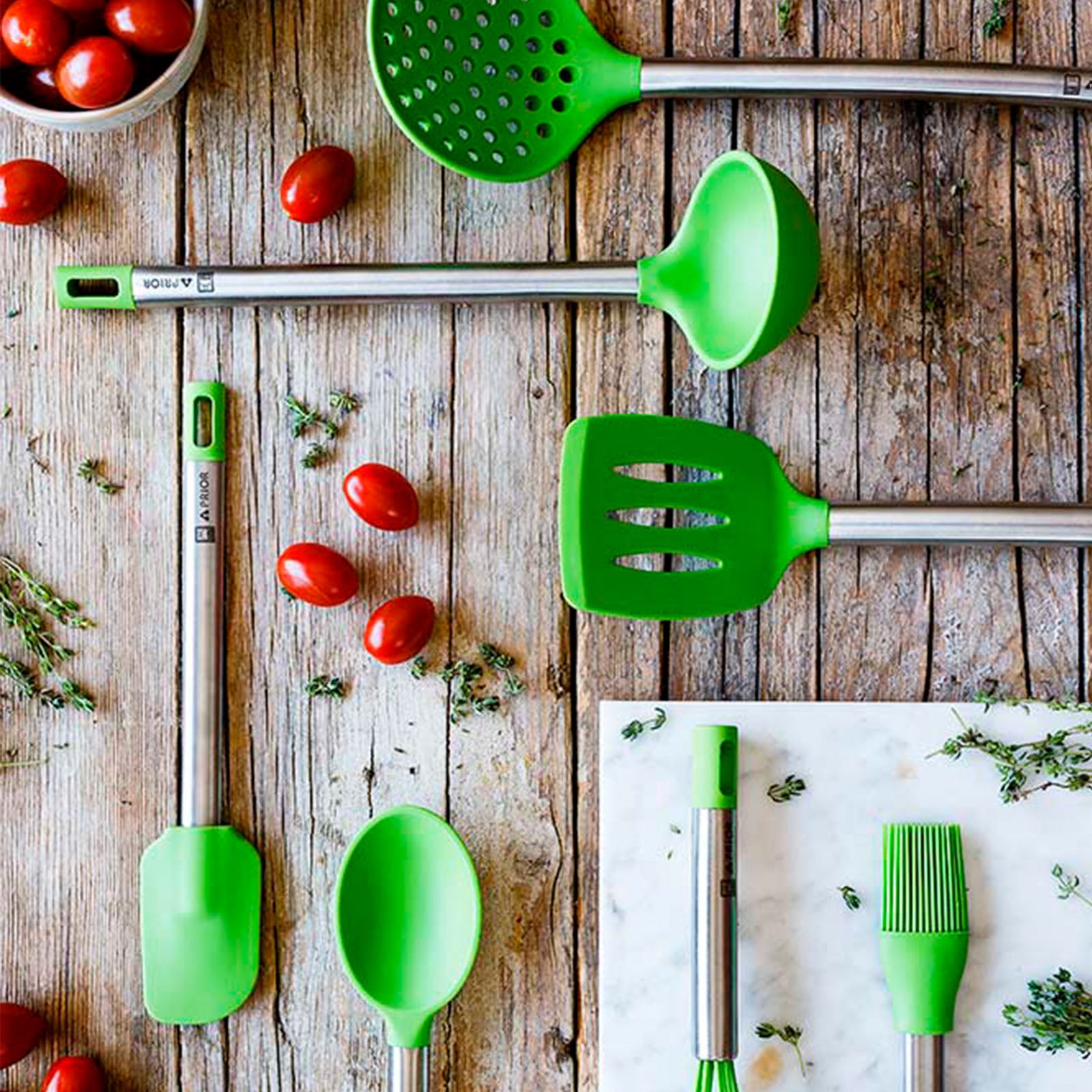 Totalmente apta tanto para consumo de alimentos así como para consumo sanitario. Un bonito diseño y el icónico color verde de la colección Prior para unos elegantes y prácticos utensilios de cocina, que además cuidarán de todas las piezas de tu batería de cocina, incluso las antiadherentes. Apto para lavavajillas.
