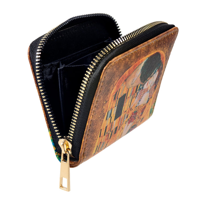 Monedero pequeño tipo cartera para mujer JAVIER El Beso con cierre de cremallera. Formato ideal para llevar en bolsos pequeños, riñoneras o mochilas ya que tiene un diseño muy compacto.