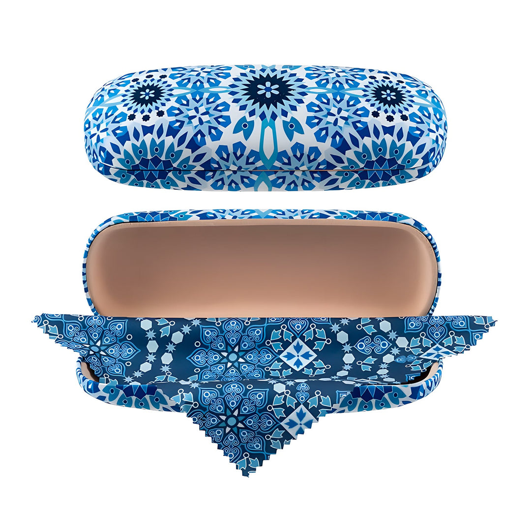 Funda para gafas rígida de la colección Arabesque de Javier con acabado suave y cierre flex. Viene provista de un paño de microfibra a juego con la funda. Es ideal para que puedas llevar tus gafas siempre protegidas a cualquier lugar. Es ideal para regalo, su diseño no dejará indiferente a nadie.