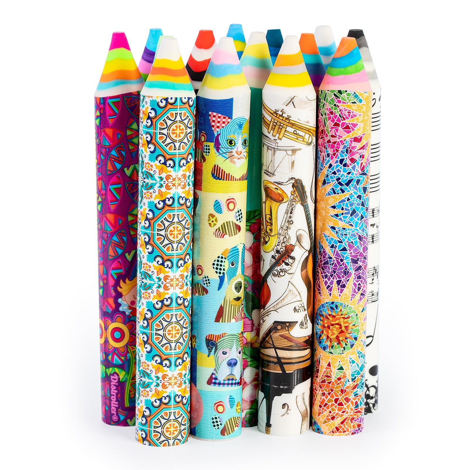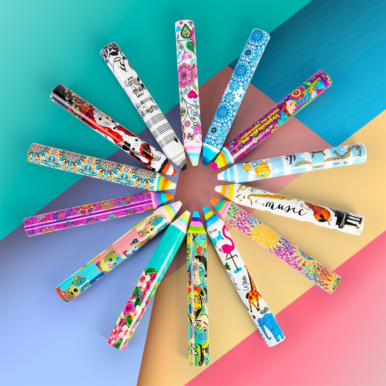 Su forma de lápiz las hace muy cómodas de sujetar. Son flexibles y están recubiertas con un protector plastificado y decorado con un colorido estampado de mosaico.