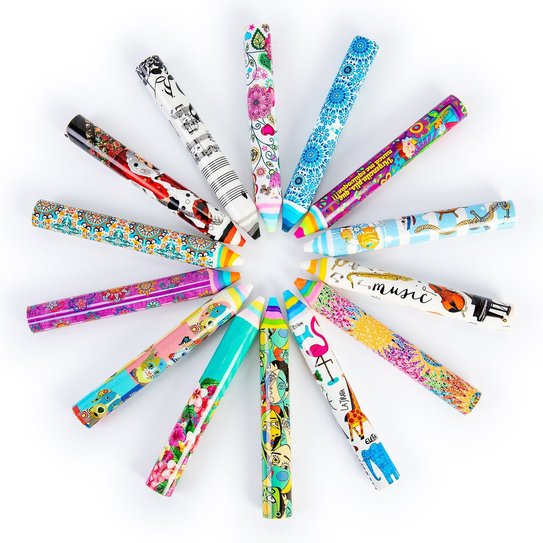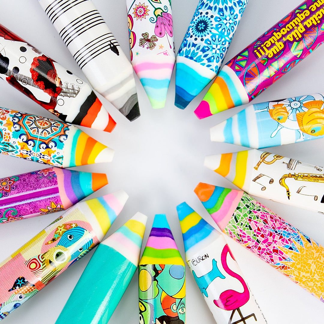 Su forma de lápiz las hace muy cómodas de sujetar. Son flexibles y están recubiertas con un protector plastificado y decorado con un colorido estampado de mosaico.