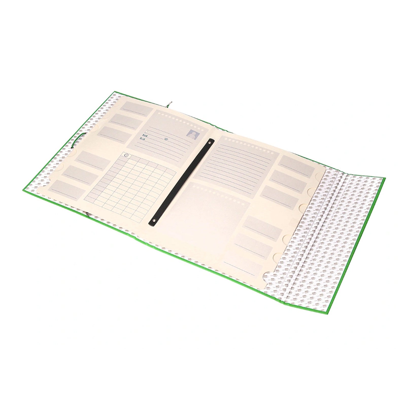 Guarda interior impresa, posee solapa y divisor de 12 departamentos. Cierre con gomas Tamaño folio prolongado.