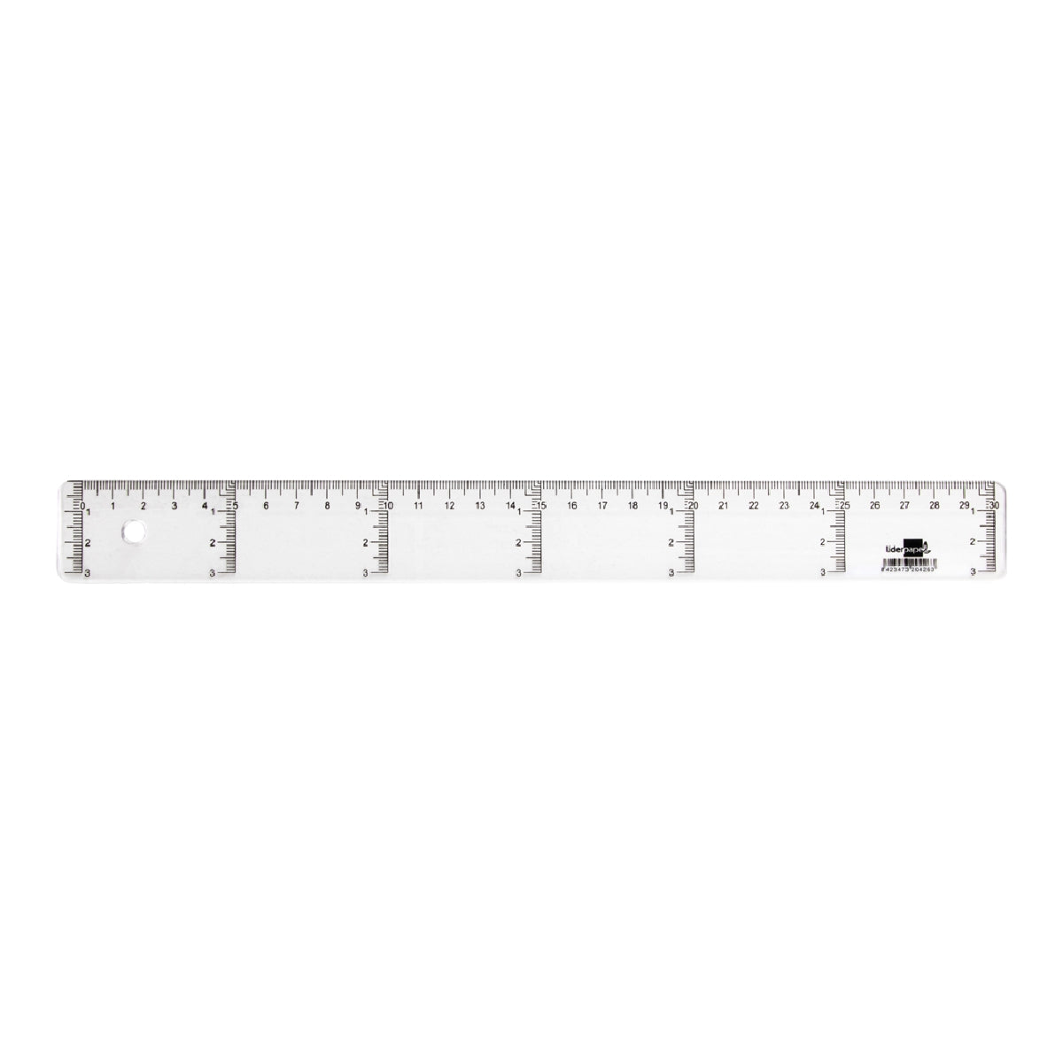 Transparente. Con borde biselado y graduación vertical y horizontal.