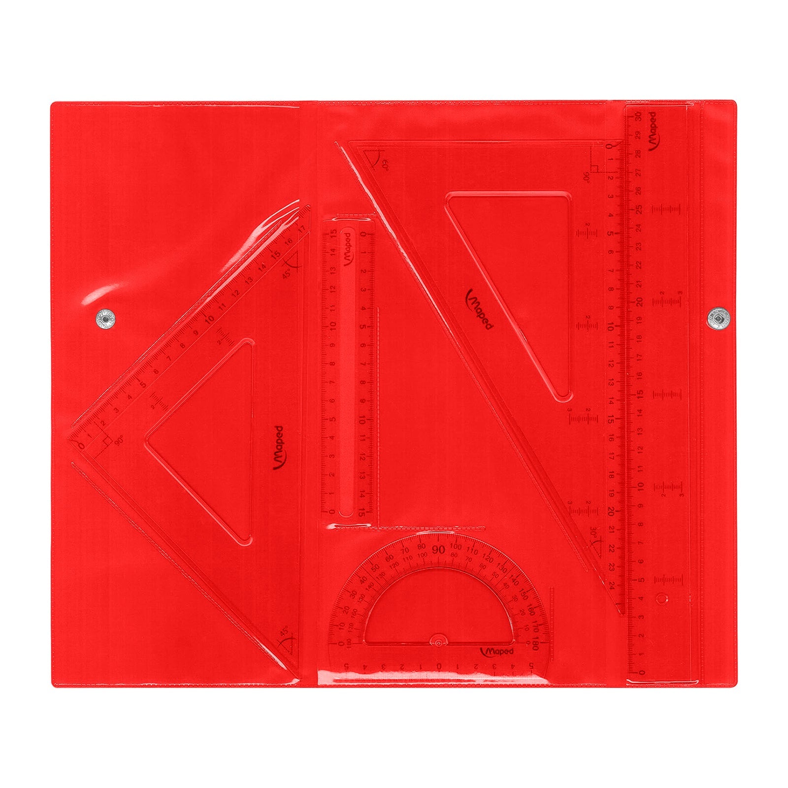 MAPED - Kit de 4 Piezas Escolares Transparentes Technic para Geometría con Bolsa con Cierre. Rojo