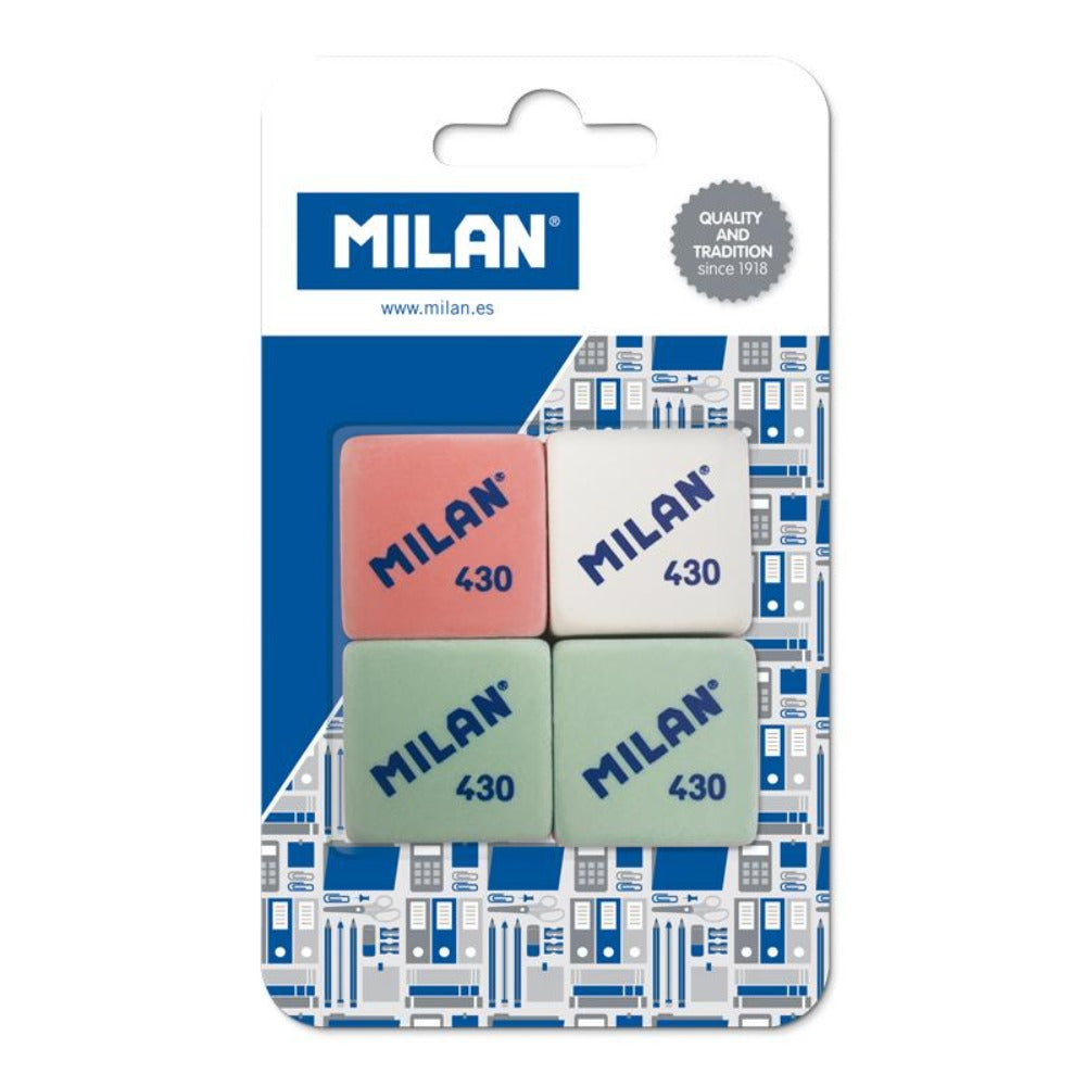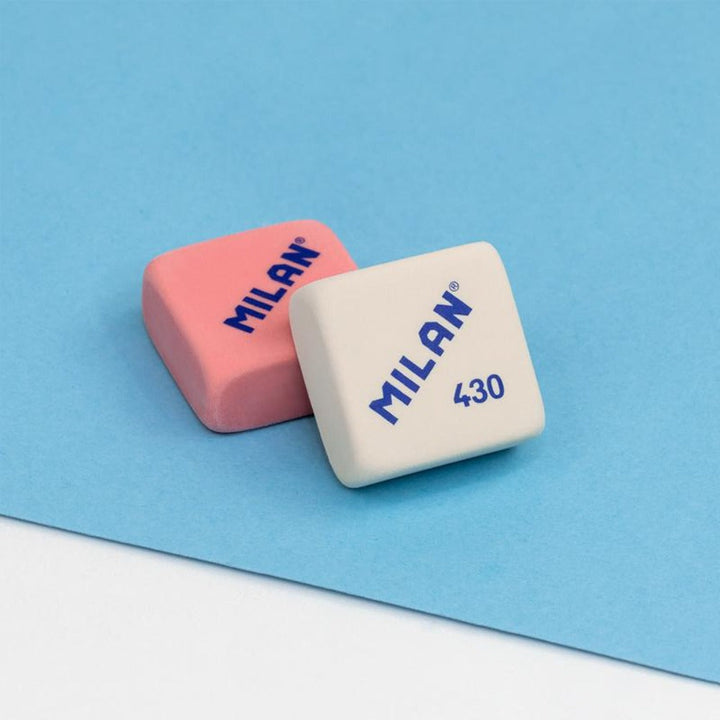 Goma suave de caucho sintético tipo "miga de pan" cuadrada. Para borrar una amplia gama de lápices de grafito sobre toda clase de papeles. La clásica goma MILAN 430 es una de las más vendidas. Colores surtidos: blanco y rosa. Goma de recambio para cualquier afilaborra o eraser and brush de la familia COMPACT. Disponible también con funda. Referencia: BMM9215