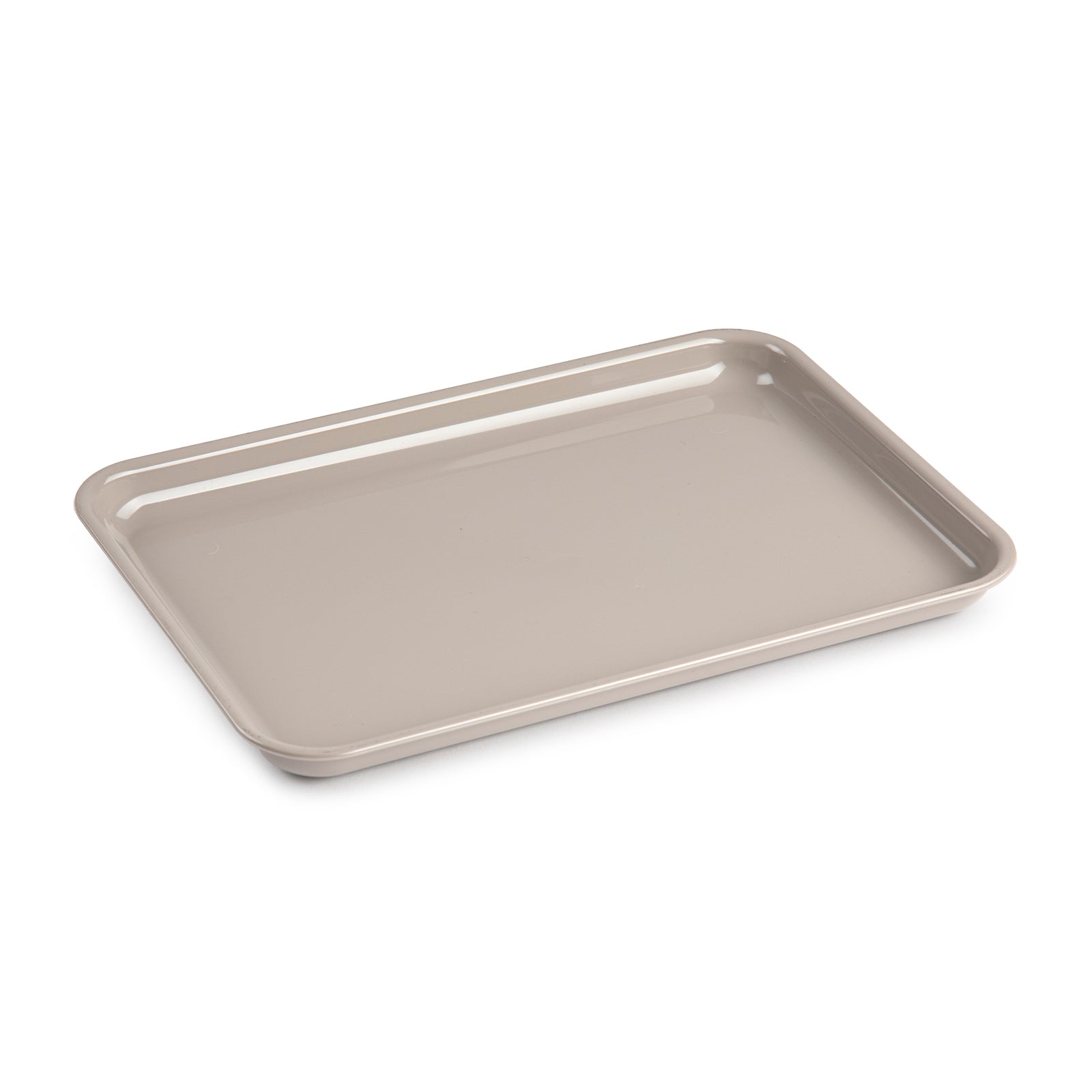 Son completamente lisas con bordes altos, para evitar que se caigan los objetos con el movimiento. Son apilables y su textura la hace muy fáciles de limpiar. Además, son aptas para lavavajillas.