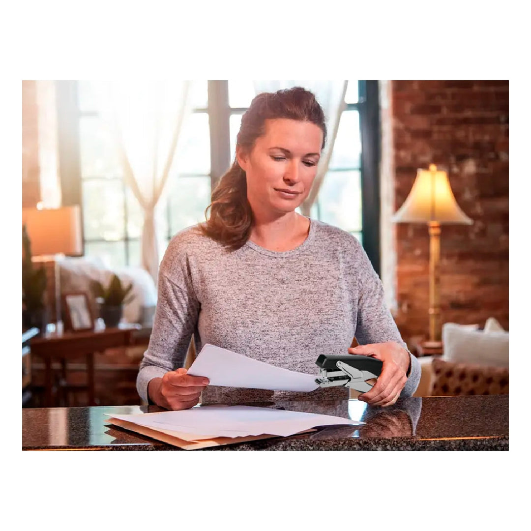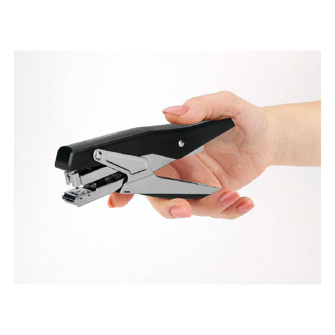 Grapadora de tenaza metalizada de alta calidad y resistencia. Carga trasera. Grapado plano.