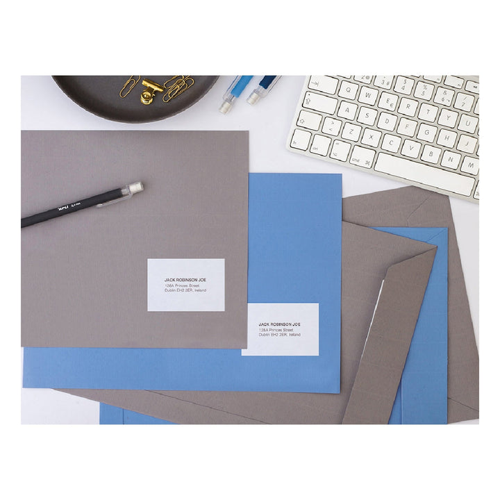 Etiquetas blancas autoadhesivas adecuadas para impresoras ink-jet. láser y fotocopiadoras. Cada caja. según tamaño. incluye 25 o 100 hojas DIN A4 en las que se presentan las etiquetas.