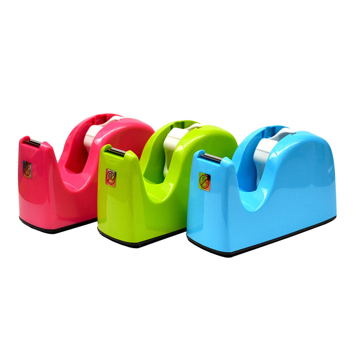 Dispensador de cinta adhesiva de sobremesa mediano para asegurar que la cinta sea de fácil acceso, sencilla y rápida de reemplazar en cualquier momento. Es muy pesado para su uso con una sola mano y cuenta con base antideslizante para que no resbale al usarlo. Referencia: 0517