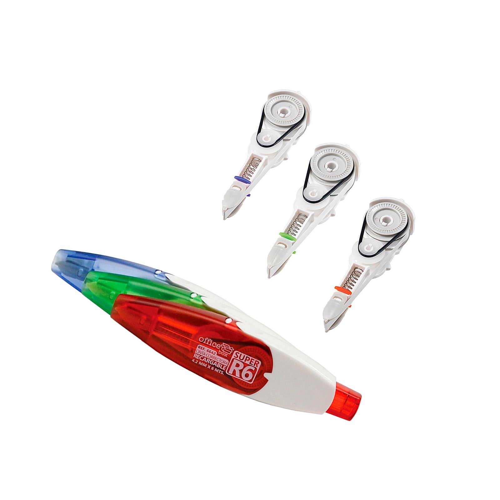Pack de 3 recambios para cinta correctora SDI Super R6 de 6 mm de ancho. Es muy fácil de extraer y colocar de nuevo. Además, gracias al diseño translúcido de la cinta correctora podrás ver cuando se está terminando para substituirlo.