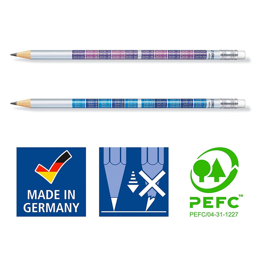 Incluye 2 unidades con los dos tipos de tablas de multiplicar. Lapiceros redondos con mina de 2 mm de ancho, fáciles de afilar y adecuados para escribir, subrayar y esbozar. ¡El complemento indispensable e ideal para los niños en la escuela!