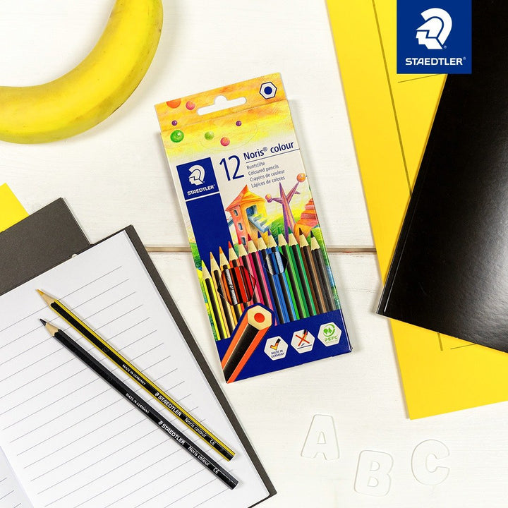 Lápices de colores fabricados con material WOPEX, innovador material formado por grafito, WPC y una cobertura especial para la superficie del lápiz. Gran resistencia a la rotura gracias a la especial formulación de la mina y a su doble encoladura.