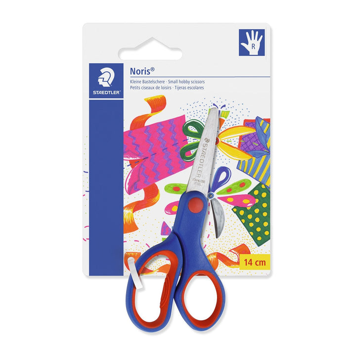 Tijeras para manualidades con corte de alta calidad gracias a sus cuchillas romas fabricadas en acero inoxidable. Zona de agarre en PVC, suave y ergonómica. Tijeras diseñadas para personas diestras. Gran durabilidad y resistencia al óxido.