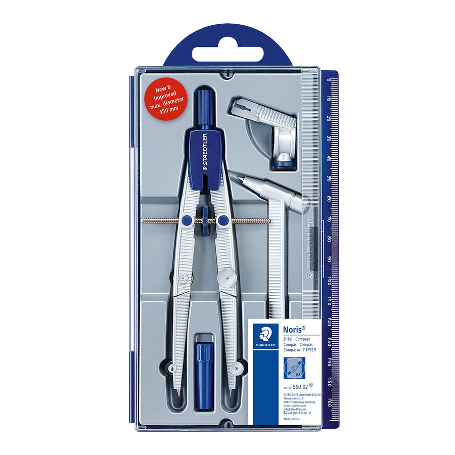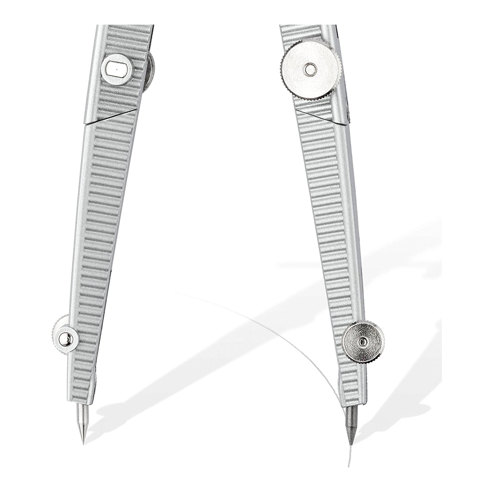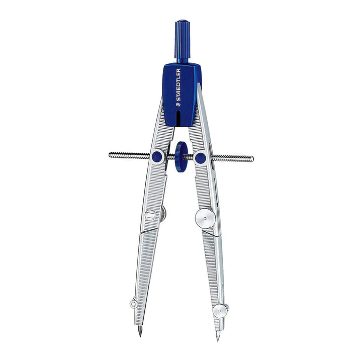 Compás de precisión STAEDTLER Mars con rueda central y mecanismo de ajuste rápido mediante teclas. Patas articuladas para hacer más eficiente y cómodo su uso. Aguja y minas intercambiables, con tija 4 mm. Incluye un tubo de minas de recambio y un adaptador universal de rosca, para poder dibujar con cualquier tipo de bolígrafo, lápiz o rotulador.