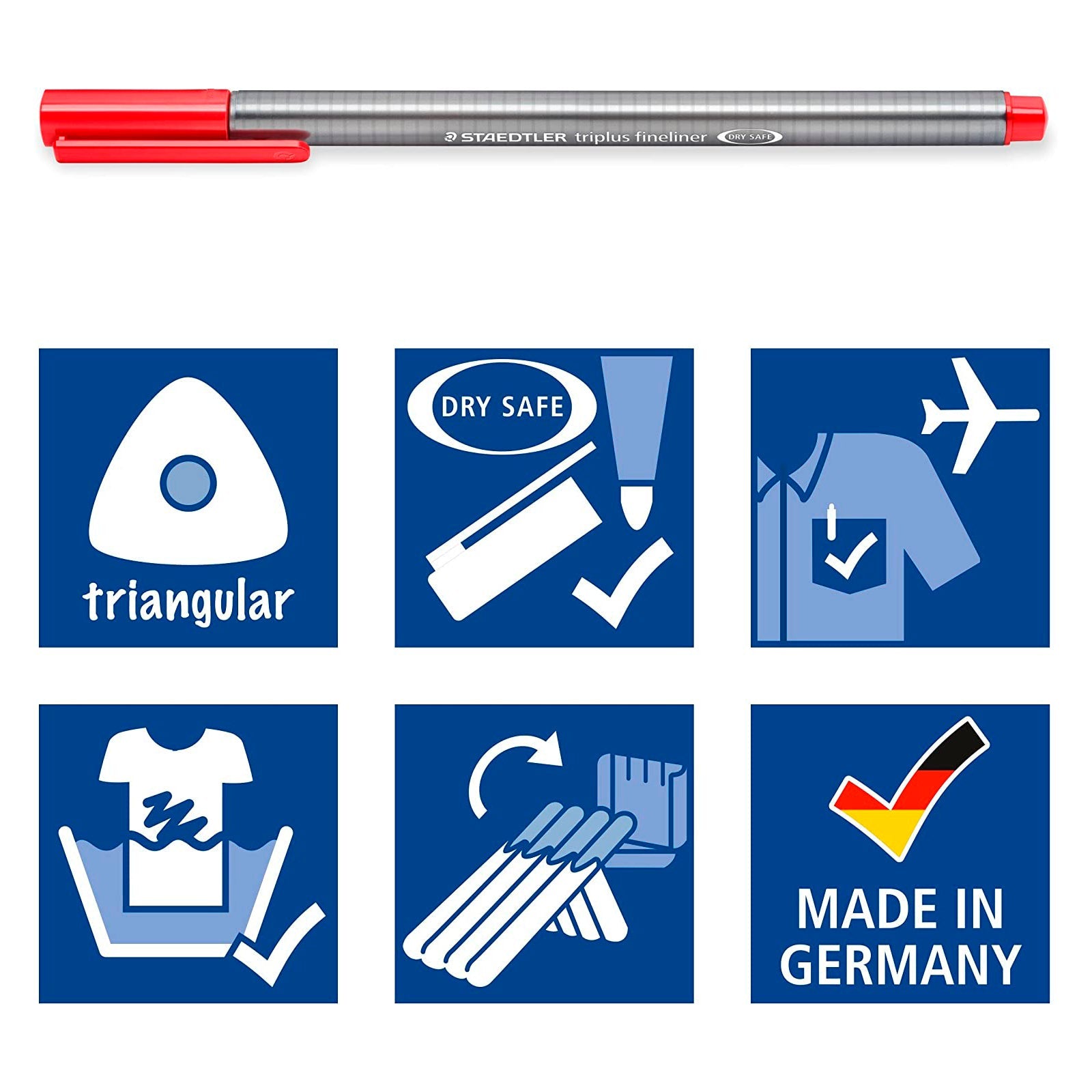 Con un diseño triangular ergonómico para facilitar una escritura suave y de manera relajada esta fabricado en PP para garantizar una larga vida de uso. El estuche de sobremesa fabricado en plástico rígido, esta pensado para que tengas acceso de forma rápida y cómoda a todos los rotuladores. Su fino trazado tiene una anchura de 0.3mm.