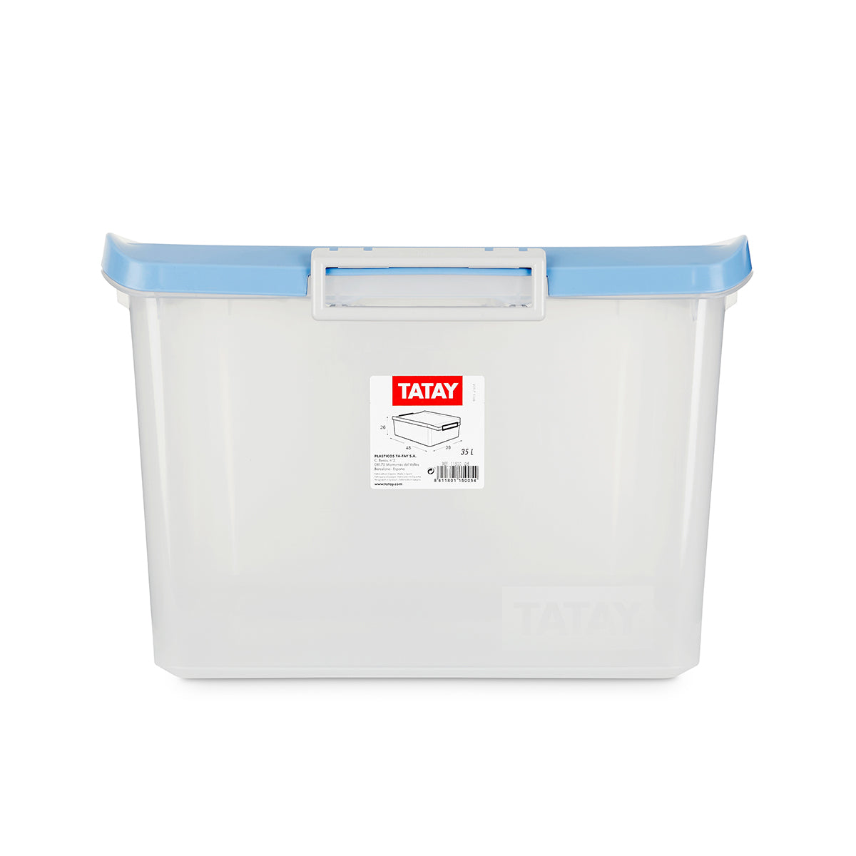 Caja de ordenación multiusos con tapa TATAY de 35L de capacidad. Está fabricada en plástico PP, un material libre de BPA, muy higiénico y reciclable. Es transparente para poder visualizar el contenido de su interior en todo momento.