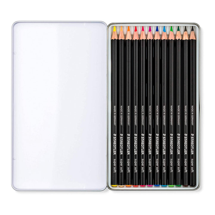 Caja metálica de 12 lápices acuarelables super suaves de diseño hexagonal de la serie Design Journey de STAEDTLER. Son óptimos para dibujar, pintar y esbozar tus creaciones. Mina de 2 mm de diámetro resistente a la rotura, que ofrece trazos especialmente suaves e intensos. Referencia: 149C M12